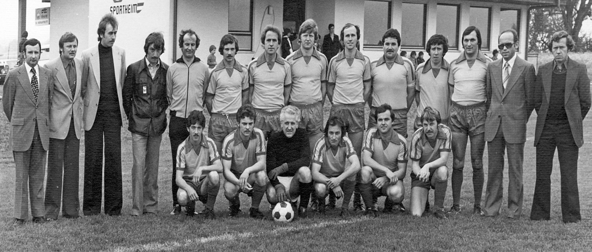 hintere Reihe von links: Norbert Jung, Karl-Eugen Wodniok, Karl Giray, Albert Schmid, Peter Brändle, Werner Fecht, Karl-Heinz Hausch, vordere Reihe von links: Alois Gnann, Albert Michel, Karl Michel, Dietmar Eckel, Jürgen Auer, Joachim Gutmann